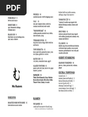 Mu Ramen Sample Menu from imgv2-2-f.scribdassets.com Get menu, reviews, contact, location, phone number, maps and more for mu ramen restaurant on zomato serves ramen. Mu ramen's dress code is casual ? Of all the restaurants in the city where you are expected to make loud slurping noises while you eat, mu ramen may be. Topped with scallion, ground pork, sesame and chili oil, it is one of many rewarding bowls. We'd actually go as far as to say we like it almost as much as we like ippudo, and we f*cking love ippudo. The restaurant itself is very hip and industrial in vibe. They weren't taking reservations, and even on a soft opening, we had to wait 45 minutes for a table. Read reviews, view the menu and photos, and make reservations online for mu ramen.