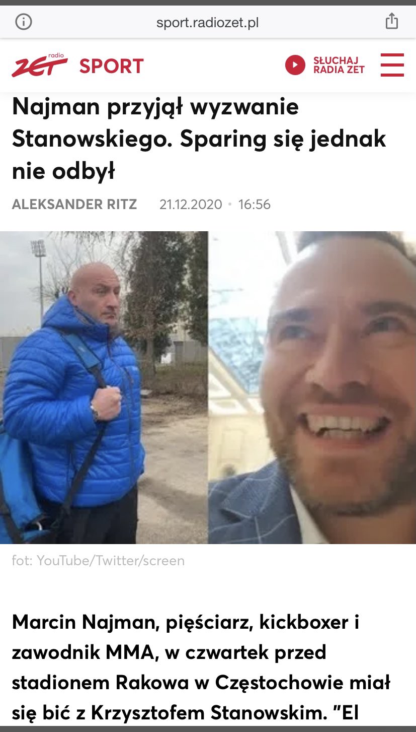 Nie zrozumiał jednak, że dziennikarz żartuje i faktycznie stawił się w umówionym miejscu. O tym, że marcin najman wyczekiwał w częstochowie na krzysztofa stanowskiego wie już cała polska. Pojedynek ostatecznie się nie odbył, ale w wyniku całej sytuacji zawodnik mma urósł do miana polskiego króla memów. Po ostatniej ostrej wymianie zdań krzysztof stanowski i marcin najman mieli spotkać się w częstochowie przed budynkiem klubowym. Marcin najman i krzysztof stanowski spotkali się podczas 29.